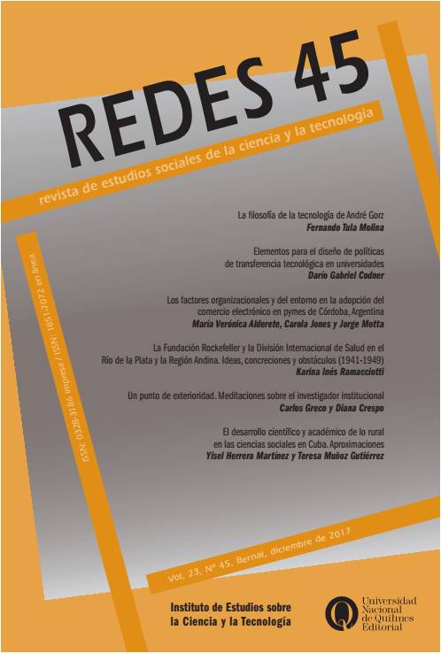 Los factores organizacionales y del entorno en la adopción del comercio electrónico en pymes de Córdoba, Argentina, María Verónica Alderete, Carola Jones y Jorge Motta