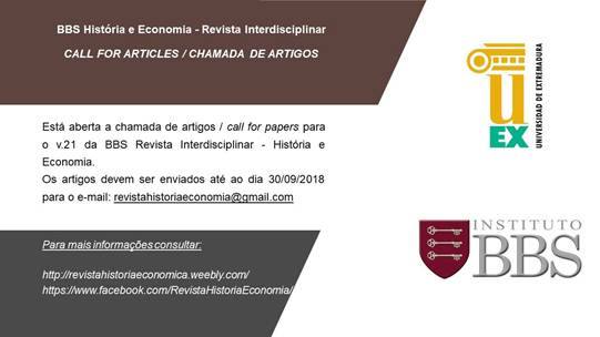 BBS Revista Interdisciplinar - Historia e Economia recepciona artículos hasta el 30/09/2018.