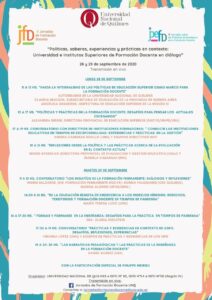 Se extiende la invitación a las Jornadas «Políticas, saberes y experiencias en contexto: Universidad e Institutos de Formación Docente en diálogo», a realizarse el 28 y 29 de septiembre de 2020. Se transmitirán en vivo a través de la cuenta de Facebook Jornadas de Formación Docente UNQ.