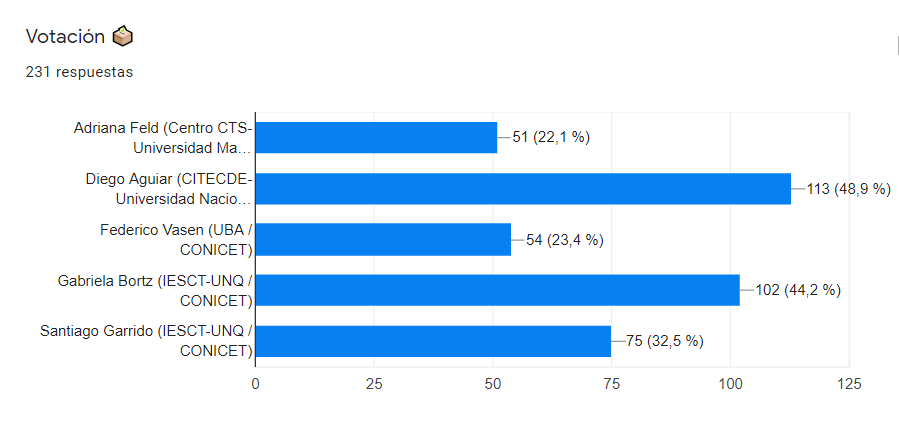 3. Santiago Garrido (IESCT-UNQ-CONICET): 75 votos - 32,5%